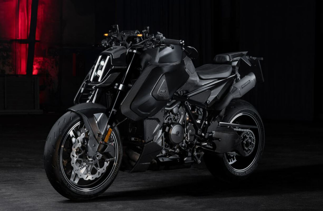 Utilizando la KTM 1390 SUPER DUKE R EVO 2025 como plataforma tecnológica, la BRABUS 1400 R SIGNATURE EDITION es una declaración de fuerza bruta y elegancia moderna, definida por la estética de diseño distintiva “Black and Bold” de BRABUS y con una exclusiva carrocería WIDESTAR, componentes de fibra de carbono de precisión y el color Midnight Veil de BRABUS.