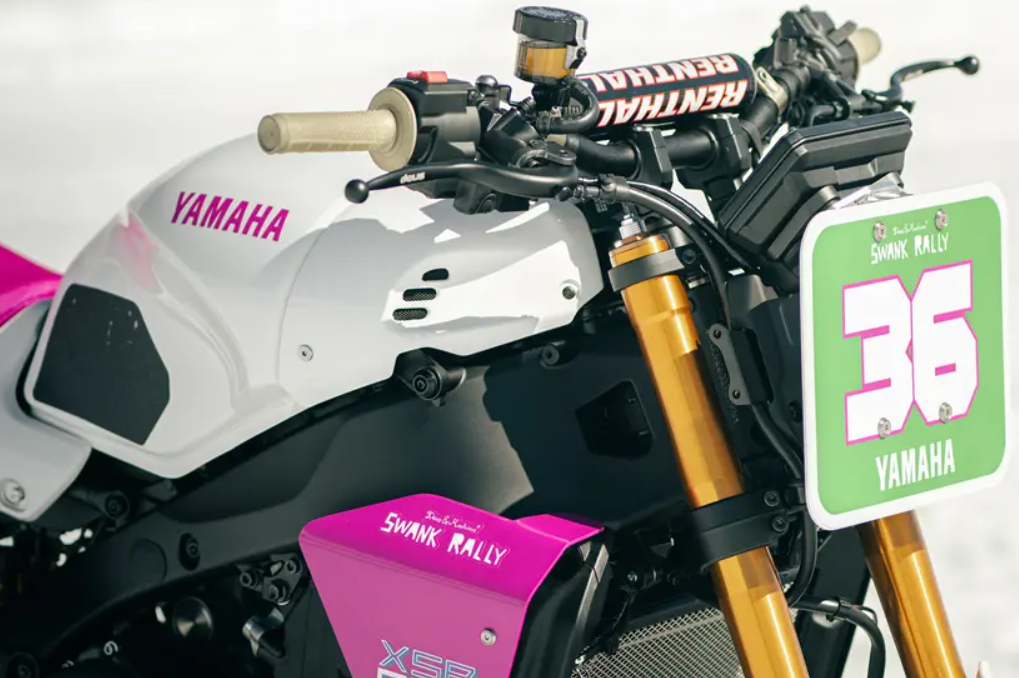 Inspirada en las legendarias Yamaha YZ125 y YZ250 de la década de los 90, la combinación de colores blanco y rosa evoca ese estilo retro que tanto define a la familia Sport Heritage de Yamaha. Bajo la pintura y los detalles artesanales que caracterizan el sello de Deus, el alma de la moto permanece intacta: el motor CP3 de 117 CV sigue siendo el protagonista. Ese carácter juguetón y ligeramente indómito del cigüeñal de plano cruzado es, precisamente, lo que permite que una idea tan radical como una XSR900 sobre hielo funcione a la perfección.