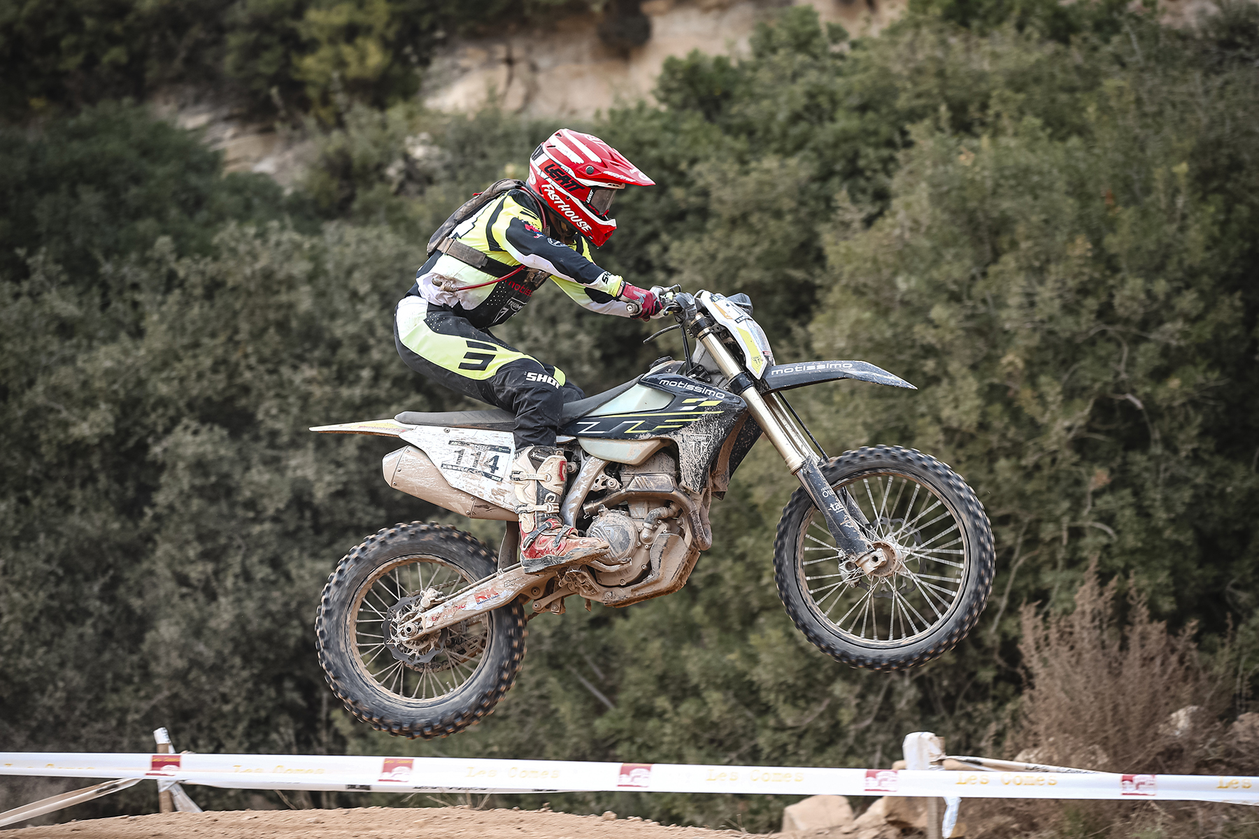El domingo, la acción marcó un ritmo aún más intenso en la carrera Junior–Senior, donde Cervantes protagonizó una salida fulgurante, se llevó el holeshot y rodó en cabeza durante los primeros kilómetros tras Jaume Betriu, con referentes como Josep García o Sergio Navarro, presionando por la retaguardia. Finalmente, firmó una notable 6ª posición en la scratch y un 2º puesto en Enduro 2, compartiendo podio con David Riera, tercero con su TF 450-E.