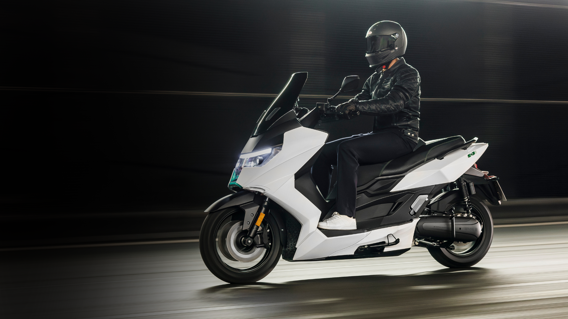 Dentro de la gama, destaca el el Nerva EXE II, un scooter refrigerado por agua con una potencia pico de hasta 19 kW, 25,8 CV aproximadamente. Esta cifra le acerca al rendimiento de una 300 cc de combustión, en un tamaño homologado en la categoría L3e-A1, es decir, destinado al carnet de 125.