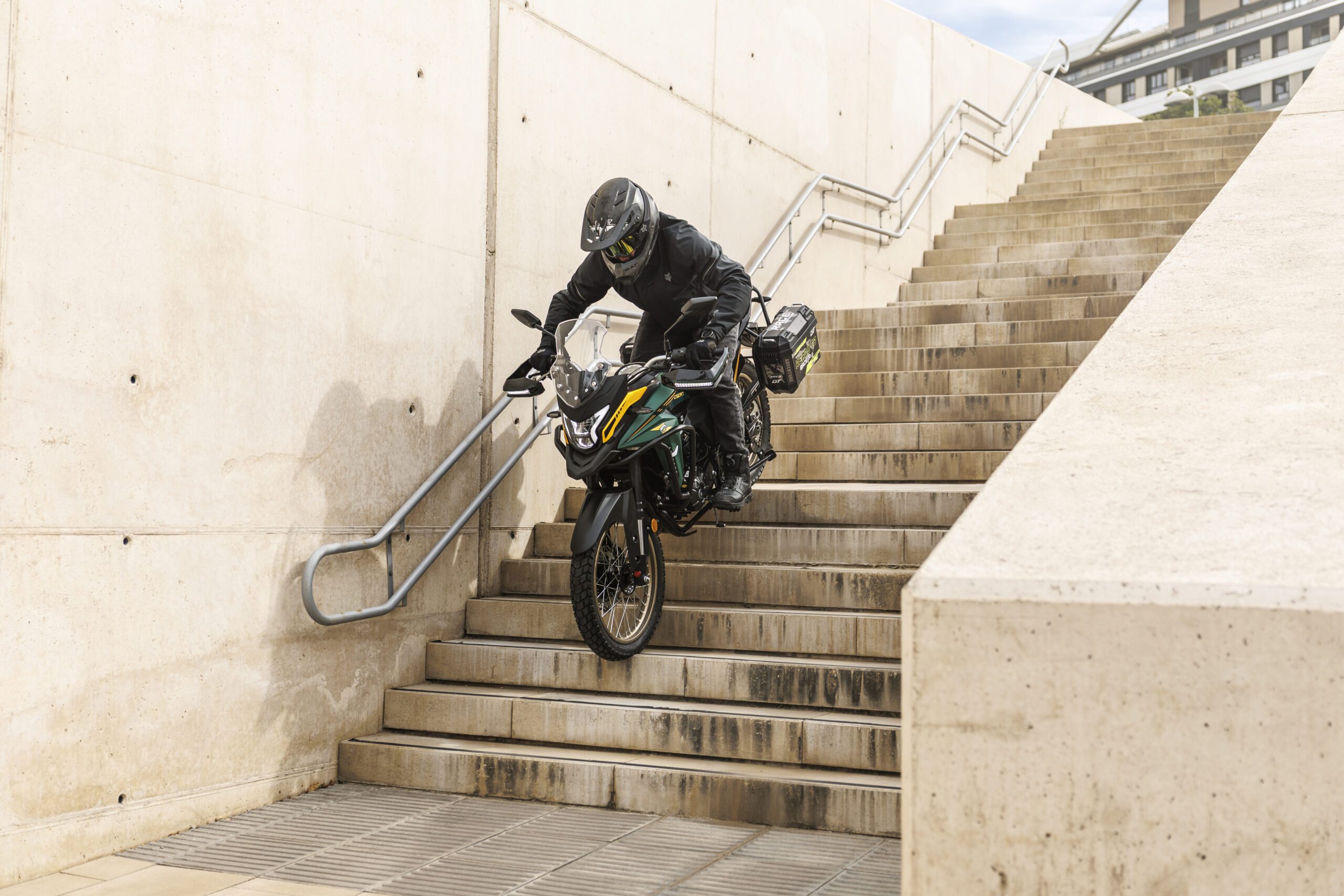Con una línea robusta y unas proporciones equilibradas, la nueva MITT Desert 125 ha sido diseñada para que todos los usuarios puedan disfrutar de la aventura tanto dentro como fuera del asfalto. El equipamiento también es poco común en una moto de esta cilindrada, contando de serie con paramanos, maletas y baúl trasero.