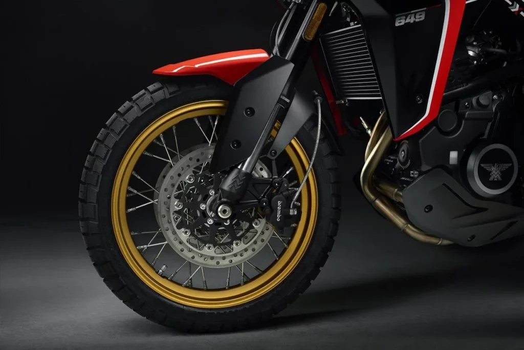 Es en sus componentes donde la X-Cape 650 saca a relucir su artillería pesada y deja en evidencia a muchas de sus rivales directas. Moto Morini no ha escatimado en lo importante. Así pues, monta una impresionante horquilla invertida Marzocchi con barras de 50 mm, que además es completamente regulable, un lujo poco habitual en este segmento. El tren trasero se confía a un mono amortiguador Kayaba.