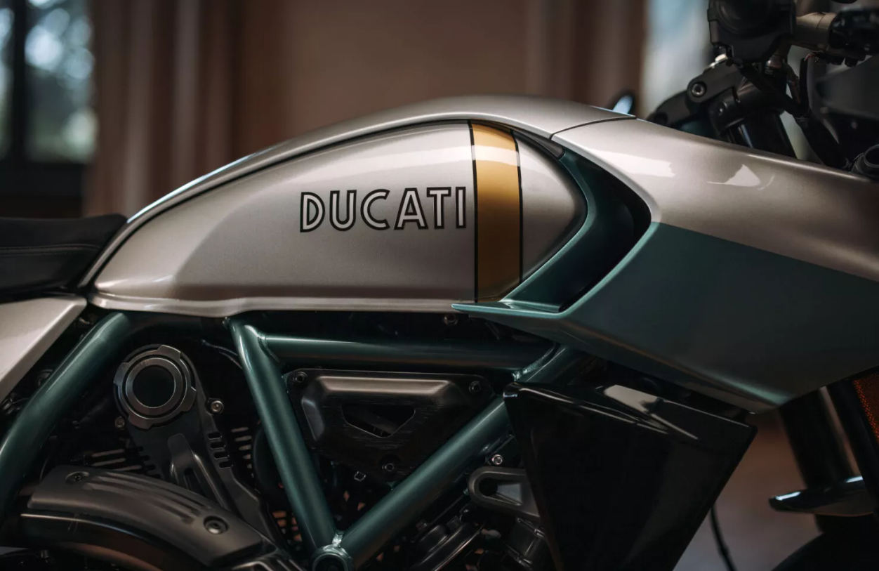 La Fórmula 73 captura la esencia de una década de transformación cultural y vitalidad artística. Inspirada en la estética minimalista y el espíritu rebelde de las Café Racer, esta edición limitada se aleja del conformismo para ofrecer un diseño inconfundible. Su estampa esbelta se viste con una decoración en plata y verde agua, fruto de una meticulosa investigación histórica del Centro de Estilo Ducati. Detalles como la franja dorada vertical en el depósito, que evoca la antigua ventana transparente para comprobar el nivel de combustible, o el uso de semimanillares con retrovisores en los extremos, subrayan una personalidad fuerte destinada a coleccionistas y entusiastas que valoran la sofisticación en cada detalle cotidiano.