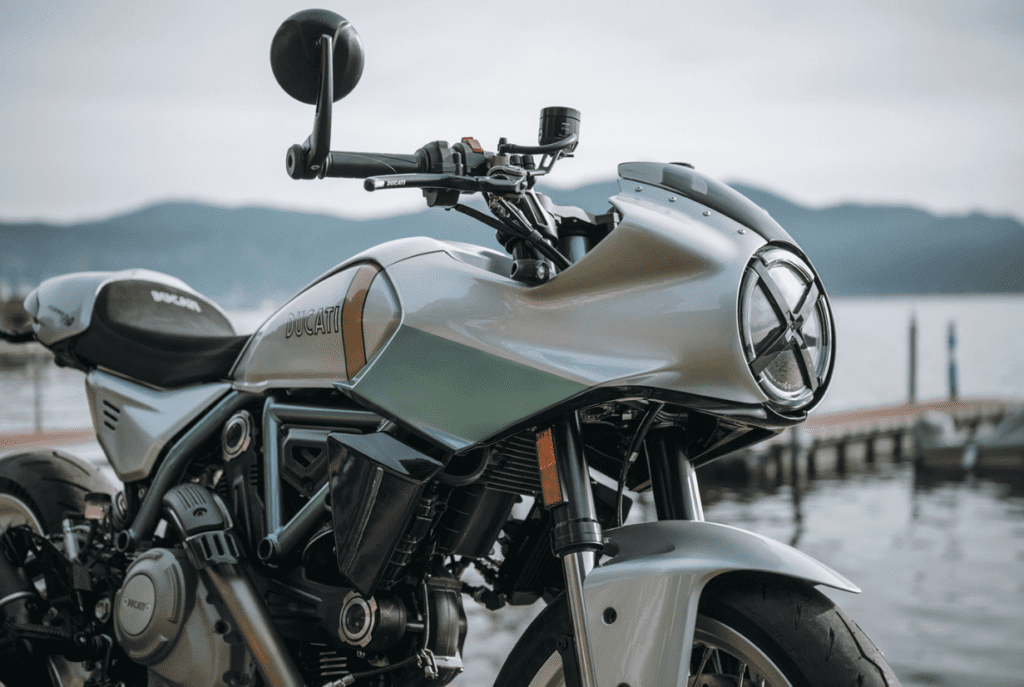 Bajo su apariencia clásica se esconde una arquitectura mecánica que equilibra la tradición con la modernidad más exigente. El motor Desmodue de 803 cc, un bicilíndrico en L refrigerado por aire y homologado bajo la normativa Euro5+, entrega 73 caballos de potencia con la entrega pura y auténtica que definió a la marca en los ochenta. La experiencia sensorial se completa con un sistema de escape Termignoni diseñado específicamente para este modelo, que dota a la moto de una voz profunda y evocadora. Gracias al acelerador Ride-by-Wire, la respuesta es siempre progresiva, permitiendo que el carácter histórico del motor conviva con una suavidad de marcha contemporánea.