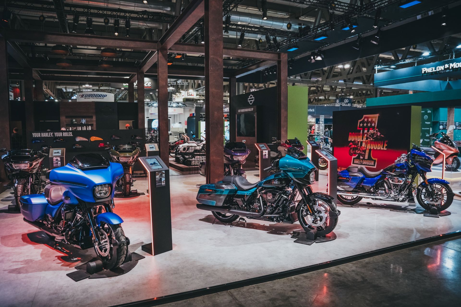 El rendimiento fue un eje central en el stand de la marca: desde customización de baggers y tecnología de competición hasta experiencias interactivas como el Race Simulator, que llevó a los fans la emoción del circuito.