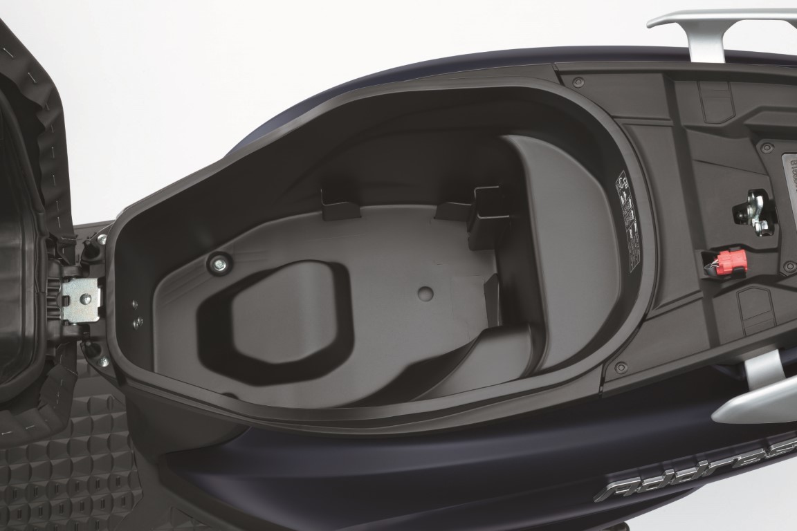 Con estos cambios, Suzuki ha logrado un aumento considerable del hueco bajo el asiento, que pasa a ser de 24,4 litros, suficiente para guardar un casco integral y pequeños objetos. También incorpora dos prácticos huecos frontales, ideales para guardar artículos pequeños o una bebida, y una toma USB de serie para cargar el smartphone durante el trayecto.