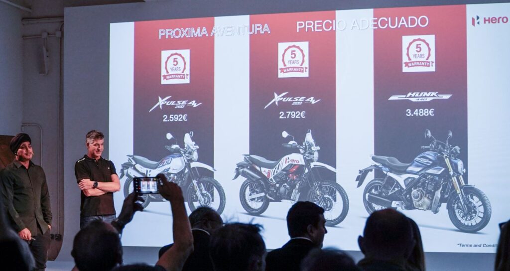 En nombre del Grupo ONEX, Dawinder Wahla Singh, director comercial, comentó lo siguiente sobre esta asociación: «Estamos orgullosos de asociarnos con Hero MotoCorp en su debut en el mercado español. Tanto Hero MotoCorp como el Grupo ONEX comparten un profundo compromiso con poner al cliente en primer lugar y garantizar una experiencia de propiedad sin fisuras, respaldada por una sólida red de venta y servicio en todo el país. Las Hunk 440 y Xpulse 200 ofrecen una combinación única de tecnología y valor que resonará profundamente entre los consumidores españoles».