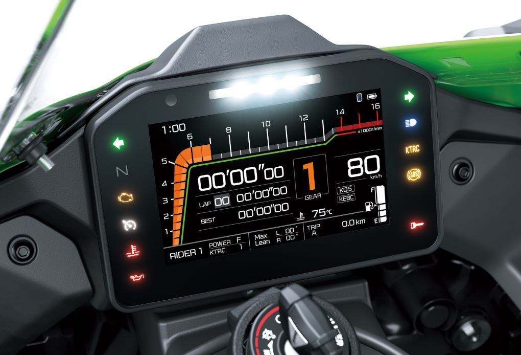 La nueva pantalla TFT a todo color de 5”, más grande y totalmente digital, combina alta tecnología con un acabado premium. Gracias a la app Rideology, se puede conectar la Ninja ZX-10R al smartphone y acceder a información completa y ajustes personalizables. La navegación paso a paso y los comandos de voz, novedades para 2026, refuerzan su carácter práctico y conectado, llevando la experiencia de conducción al siguiente nivel.