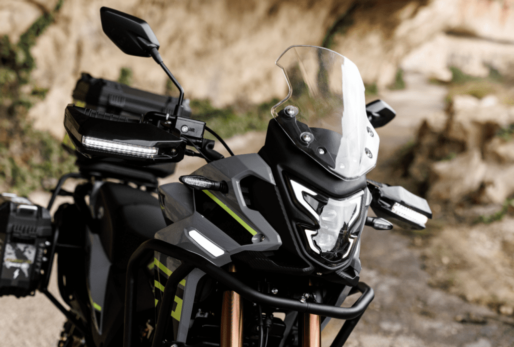 Se trata de una moto diseñada para poder disfrutar de todo tipo de rutas, por duras que sean, y para ello cuenta con una parte ciclo a la altura de su propulsor, compuesta por un bastidor multitubular de acero, horquilla invertida, amortiguador trasero regulable en precarga y unas llantas de radios equipadas con neumáticos mixtos 90/90-19 delante y 110/90-17 detrás. En cuanto a los frenos, depone de discos en ambos ejes con sistema ABS de serie para garantizar una frenada segura. Estamos ante una moto preparada para todo lo que se le ponga por delante, y más aún con un peso en orden de marcha de solo 148 kilos.
