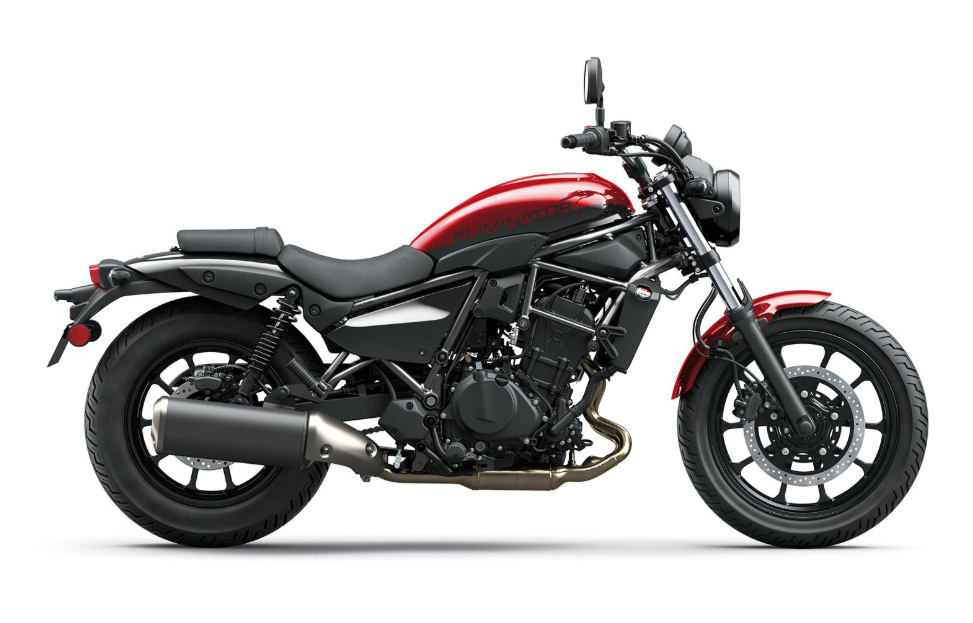 Lo primero que salta a la vista es su silueta «Long & Low» (larga y baja). Con una altura de asiento de apenas 735 mm, la Eliminator 500 ofrece una confianza inigualable, permitiendo que pilotos de cualquier estatura lleguen con ambos pies al suelo con total facilidad. Su chasis multitubular de acero, ligero y rígido, garantiza una maniobrabilidad que recuerda más a una naked deportiva que a una cruiser tradicional.