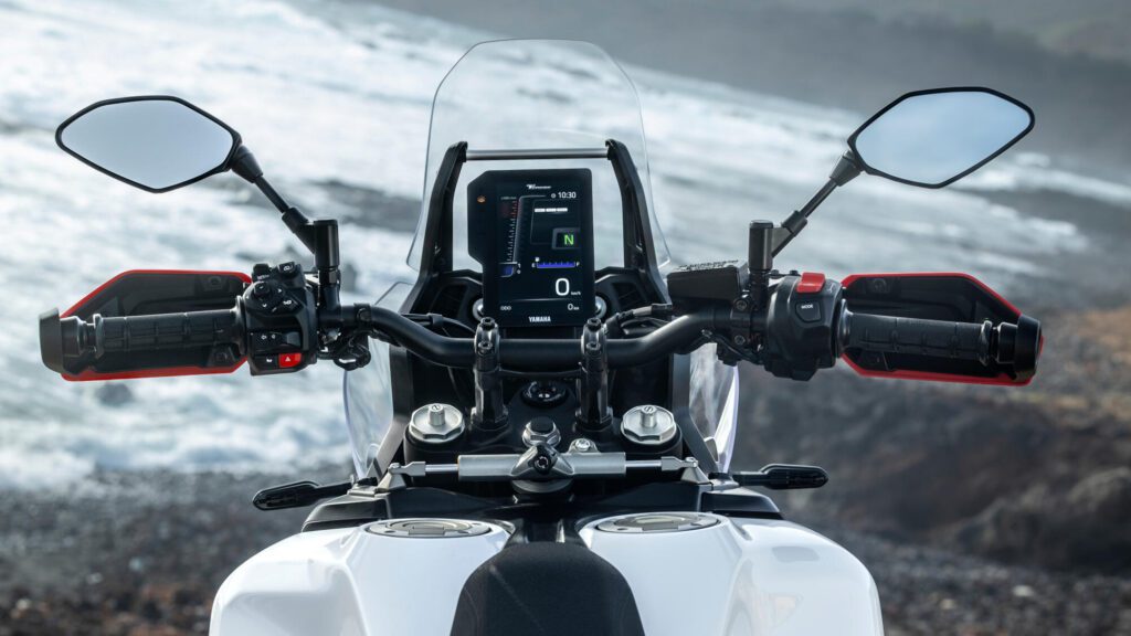 Si hay un salto evidente en esta Ténéré 2026 es, sin duda, su apartado electrónico. Yamaha ha añadido una IMU de seis ejes que supervisa en tiempo real todos los movimientos de la moto. Gracias a esto, la World Raid ajusta automáticamente la potencia del motor, el control de tracción y el control de deslizamiento, ambos configurables en tres modos (Street, Off-Road y Off)