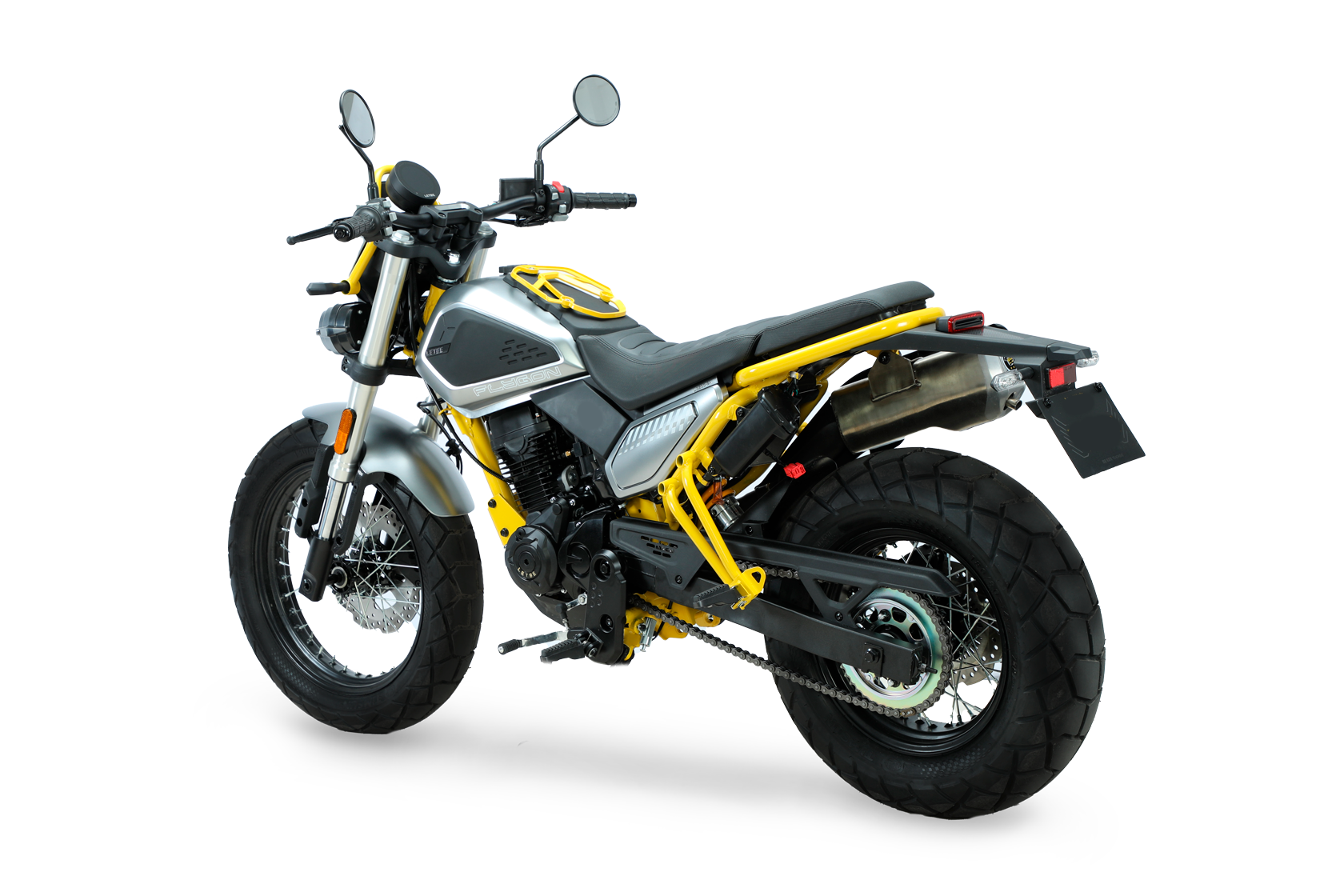 Lo primero que llama la atención de la Flygon 125 es su diseño distintivo. Alejándose de las líneas convencionales de las motos urbanas de 125 cc, adopta una estética robusta y aventurera. Cuenta con un escape elevado y neumáticos todoterreno que refuerzan su imagen off-road, a la vez que le otorgan una polivalencia real. La iluminación Full LED no solo mejora la visibilidad, sino que también contribuye a su imagen moderna y afilada.