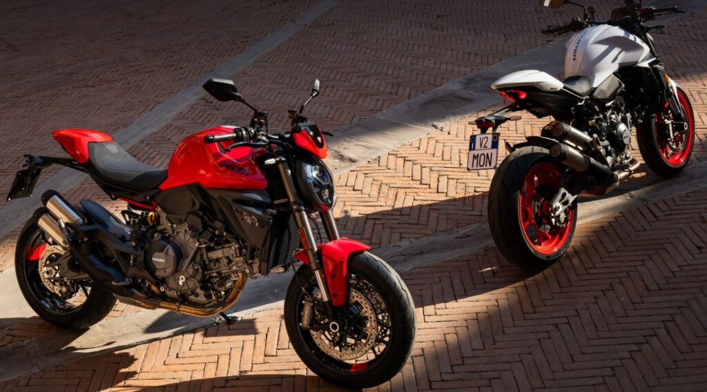 La nueva Monster utiliza el motor como elemento estructural y adopta un bastidor monocasco, con un basculante doble inspirado en la Panigale V4 y un subchasis trasero en tecnopolímero y multitubular. Esta disposición técnica, gracias a la ligereza del V2 de Ducati, reduce el peso en 4 kg (175 kg en seco, el más ligero de todos los modelos de cuatro válvulas), mejorando la agilidad y la facilidad de manejo. La suspensión Showa está ajustada para garantizar el confort diario y el rendimiento deportivo en carreteras sinuosas, lo que confirma la doble alma de la moto naked de Ducati. El resultado es una moto siempre estable, segura y divertida.