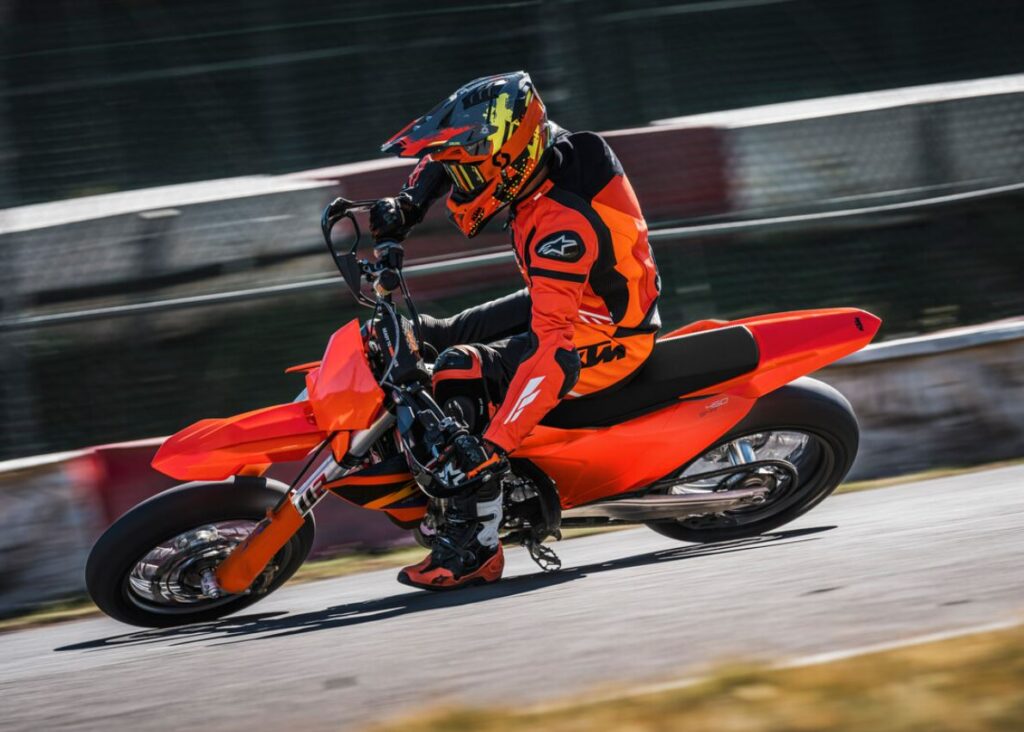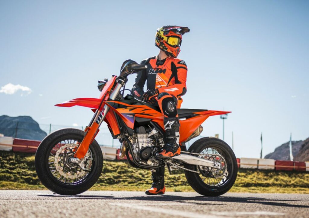 La KTM 450 SMR sigue la línea y el espíritu de KTM. En primer lugar, por la combinación del ligero y potente motor SOHC de 450 cc. En segundo lugar, por la ágil y flexible parte ciclo que contribuye a un comportamiento excepcional, una centralización y una ergonomía orientada al pilotaje deportivo. En tercer lugar, por el amortiguador XACT WP para un mayor tacto y estabilidad en la parte trasera. Y por último, por sus especificaciones técnicas: electrónica con control de tracción y control de salida, grandes y potentes frenos Brembo, piezas mecanizadas, llantas ALPINA, neumáticos Metzeler y mucho más.