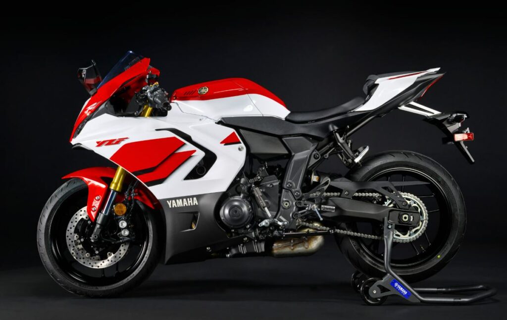Basada en los colores icónicos de la edición limitada de la R7 de 1999, centrada en la competición, la combinación de colores blanco y rojo evoca recuerdos de los revolucionarios modelos superdeportivos de Yamaha de los años 90. La R7 también estará disponible en los colores Icon Performance y Midnight Black, y se espera que esté en los concesionarios Yamaha en abril de 2026.