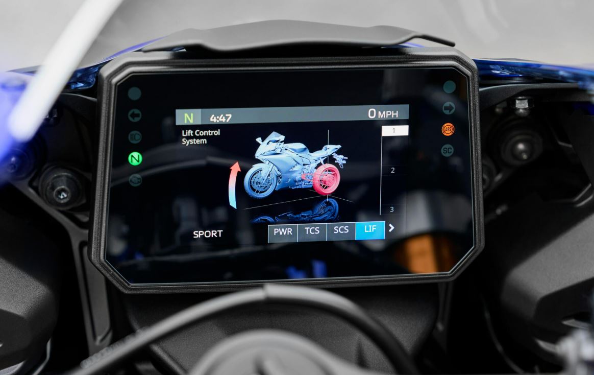El Control de Deslizamiento (SCS) también está disponible en tres niveles de asistencia, detectando cualquier deslizamiento de la parte trasera y ajustando la potencia del motor para ayudar a controlar el deslizamiento, mientras que el Control de Elevación (LIF) detecta cuando la rueda delantera se levanta del suelo al acelerar y ajusta la potencia del motor para controlar los wheelies.
