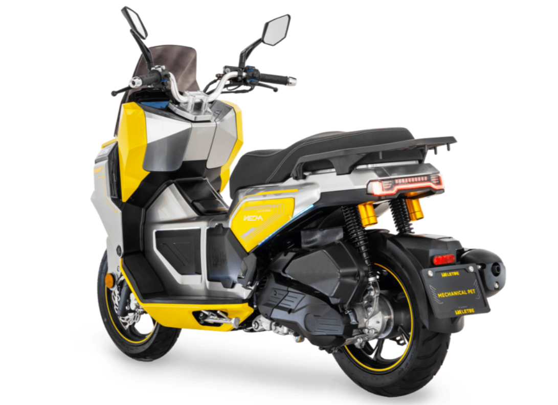 Equipada con un motor de 125cc, tecnología híbrida de doble batería para asistencia en aceleración y recuperación de energía, 4 válvulas y refrigeración. Su ECU Bosch optimiza el rendimiento para una conducción eficiente y potente. Con frenos ABS de doble canal Bosch, control de tracción (TCS) y pinzas Nissin, además de un sistema de apagado automático en caso de caída. Su autonomía superior a 400 km y el sistema keyless para desbloqueo eléctrico garantizan comodidad y confianza en cada trayecto.