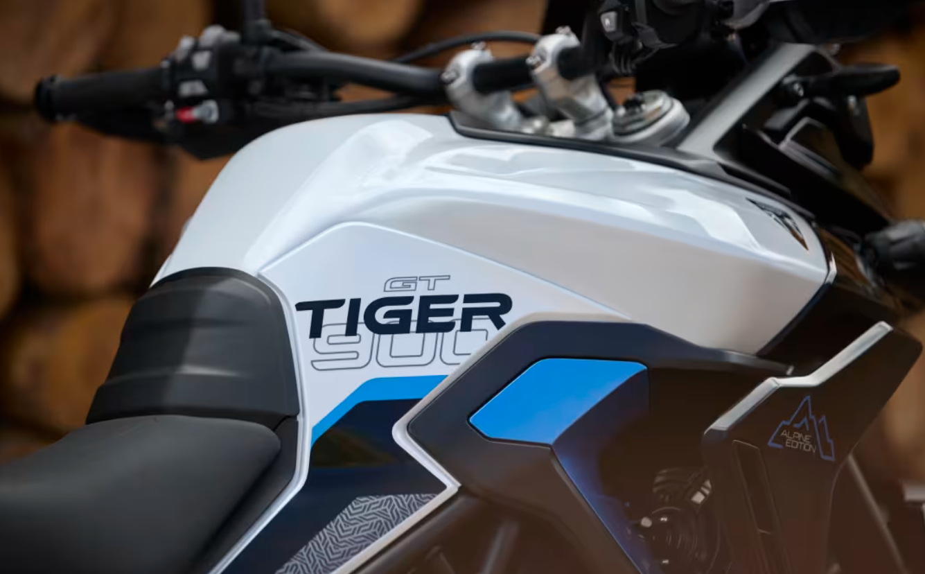 Inspirada en los grandes viajes por carretera, la Tiger 900 Alpine Edition toma como base la GT Pro y se distingue por su refinado esquema de color ‘Snowdonia White’ y ‘Sapphire Black’, con detalles en ‘Aegean Blue’