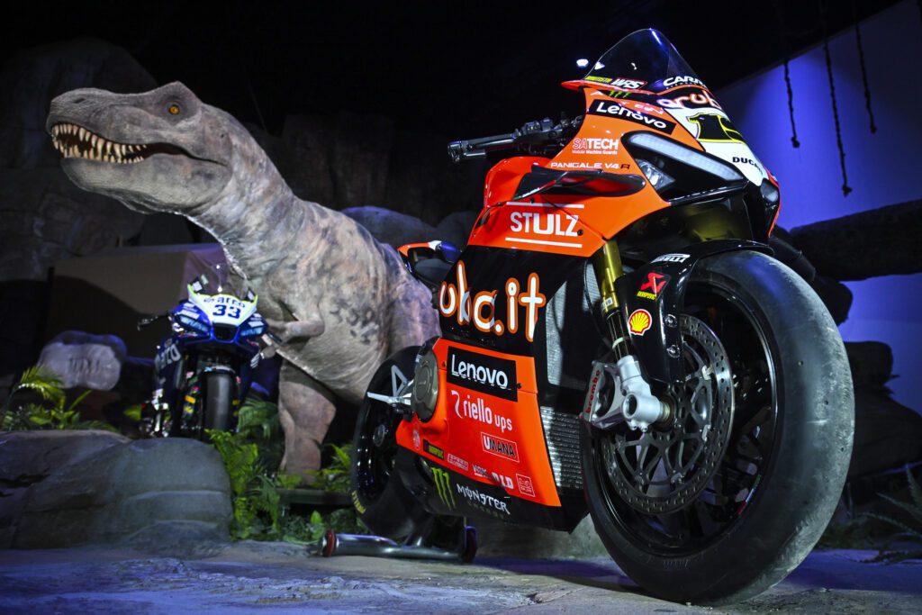 El singular escenario ha unido el rugido de las Superbikes con el del mítico T-Rex de Dinópolis