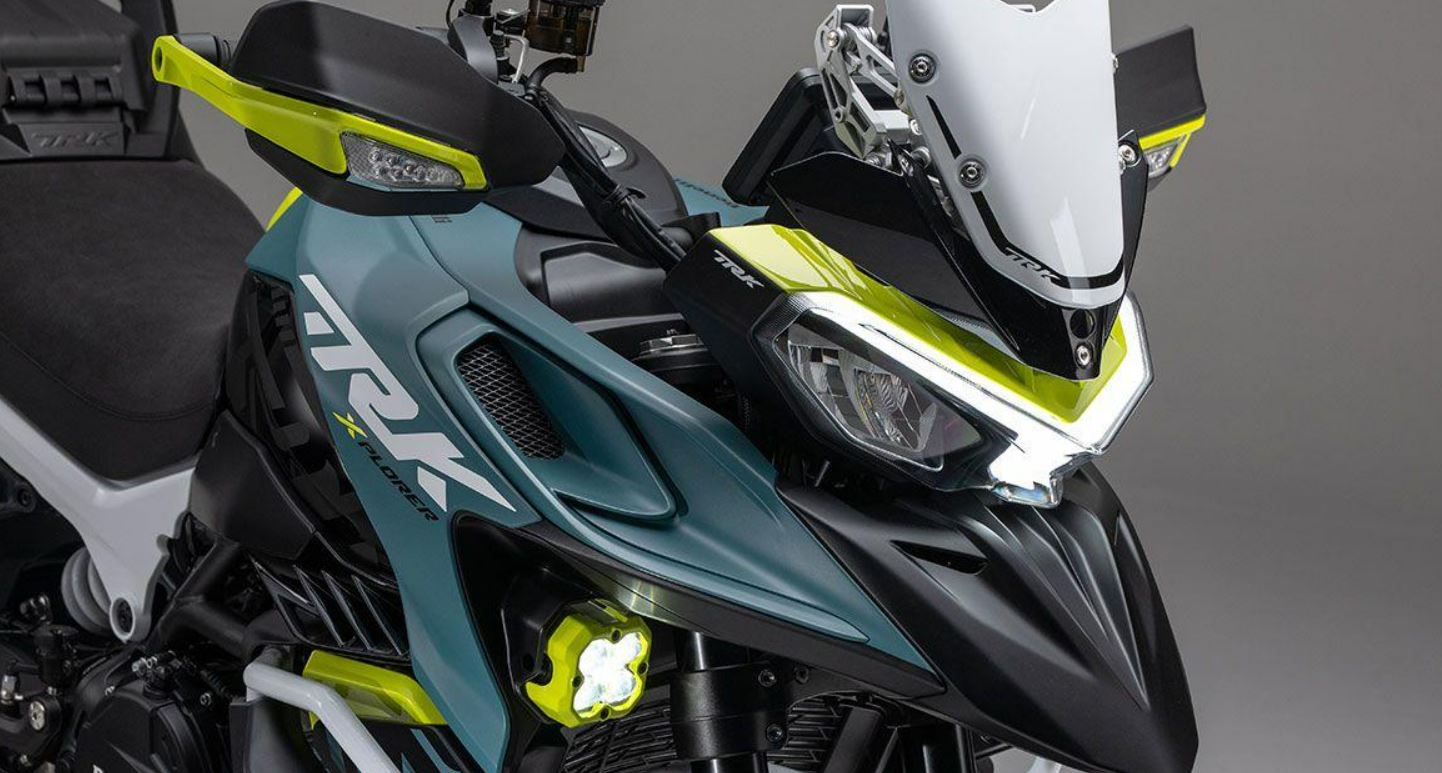 El diseño de la TRK 902 Xplorer continúa la evolución estética de la saga TRK, acentuando su carácter icónico y dinámico