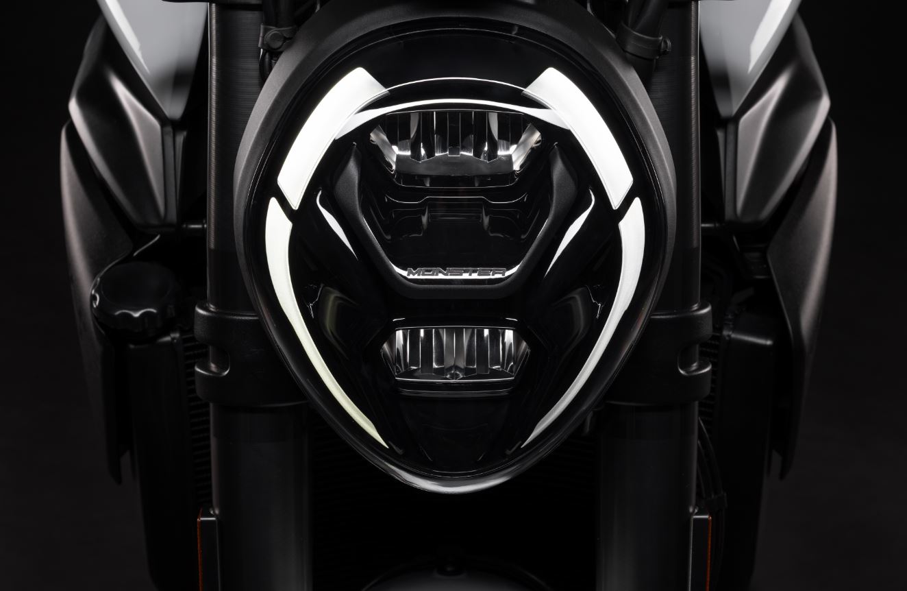 La nueva Monster, rediseñada desde cero, combina ligereza y tecnología con una estética inconfundible, reinterpretando el estilo de la primera Monster en clave moderna. Más estilizada, deportiva y compacta, la nueva Monster cautiva al revivir las características estilísticas que siempre han distinguido a la naked bike por excelencia: el faro enmarcado por los “hombros” del depósito, el asiento único para el piloto y el pasajero, y el colín corto.