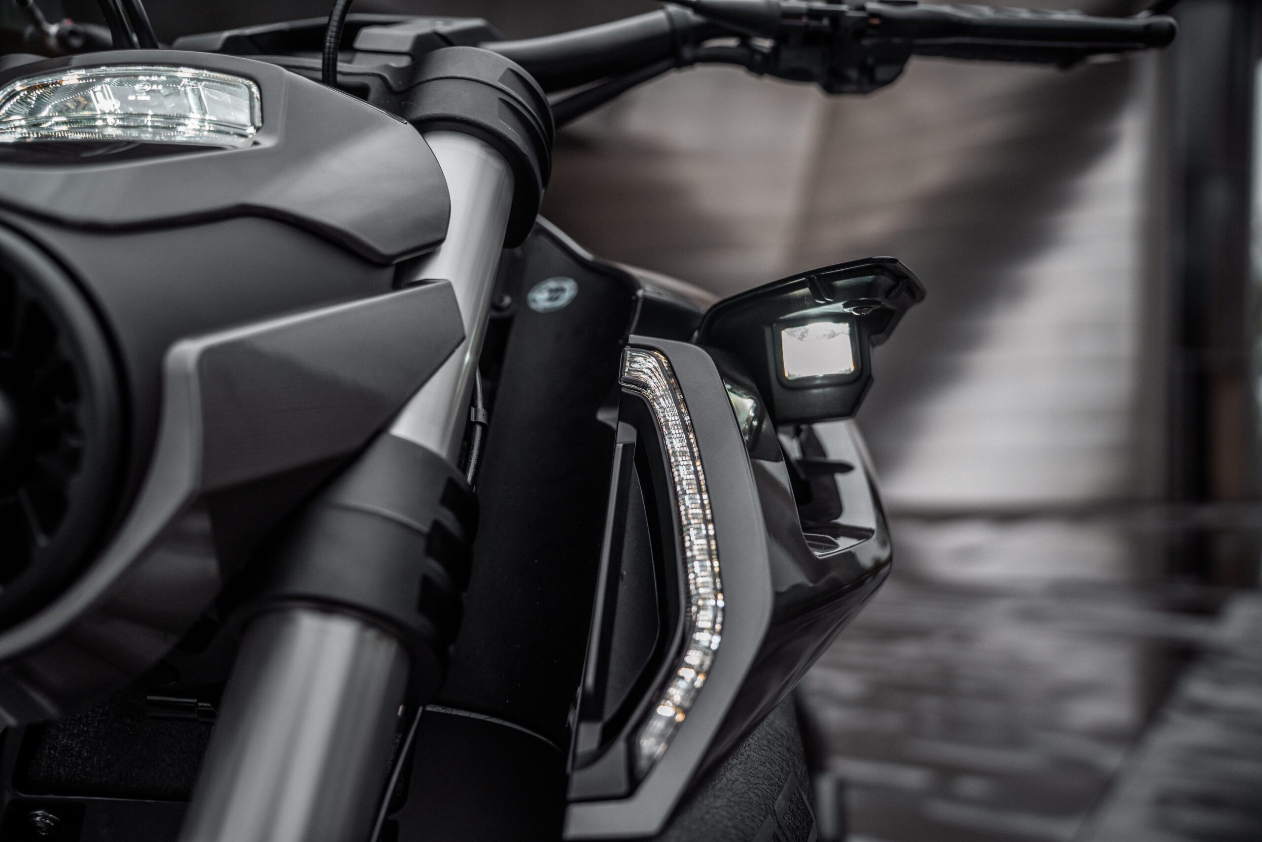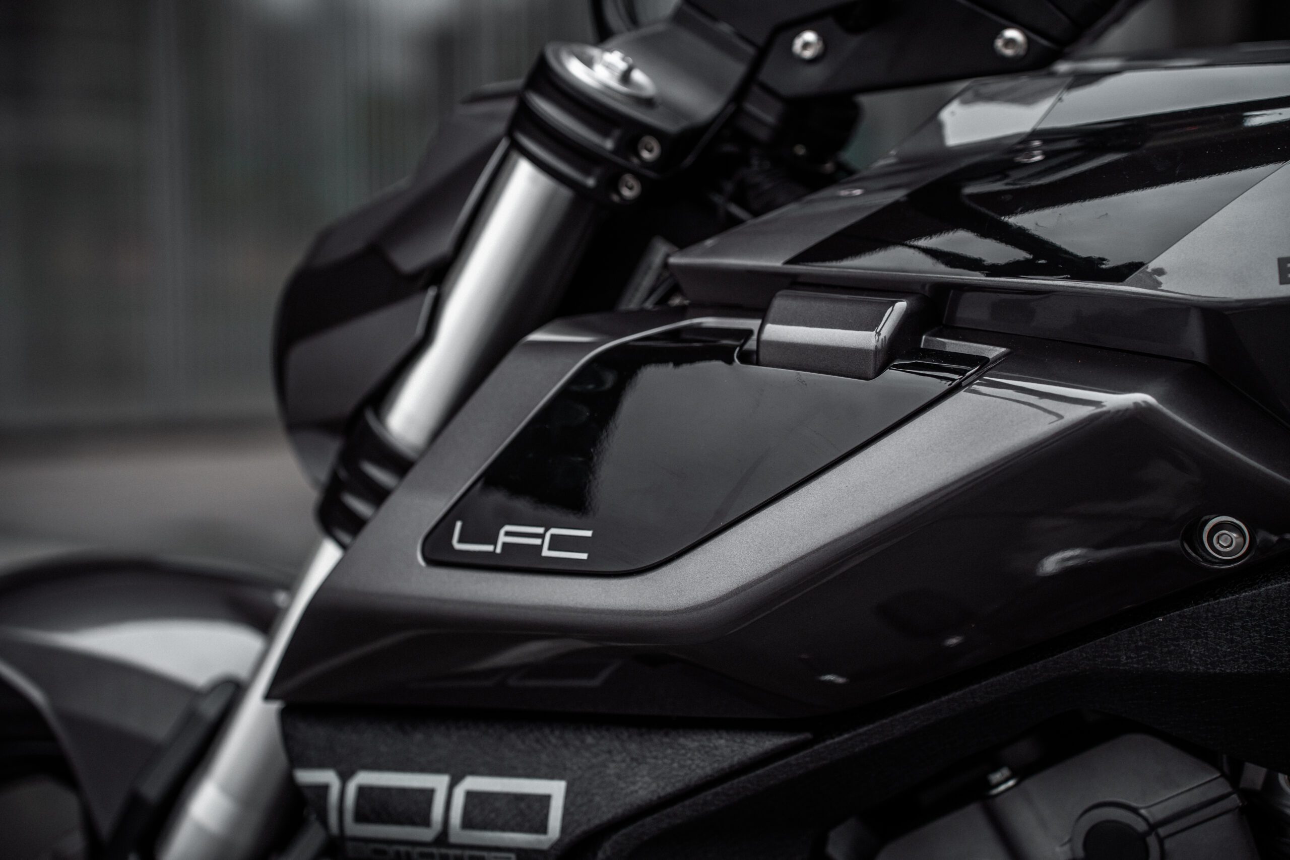 Lo primero que impacta al observar la Benda LFC 700 PRO es su fisonomía atlética y baja, donde destaca un basculante de aluminio que abraza un neumático trasero de proporciones colosales. Esta anchura de 300 mm no solo garantiza un agarre excepcional, sino que, junto a su icónica salida de escape cuádruple y su iluminación integral en tecnología LED, otorga a la moto un aspecto de prototipo traído directamente del futuro. Cada curva de su carrocería ha sido estudiada para proyectar una imagen de poder y dominio absoluto en la carretera.