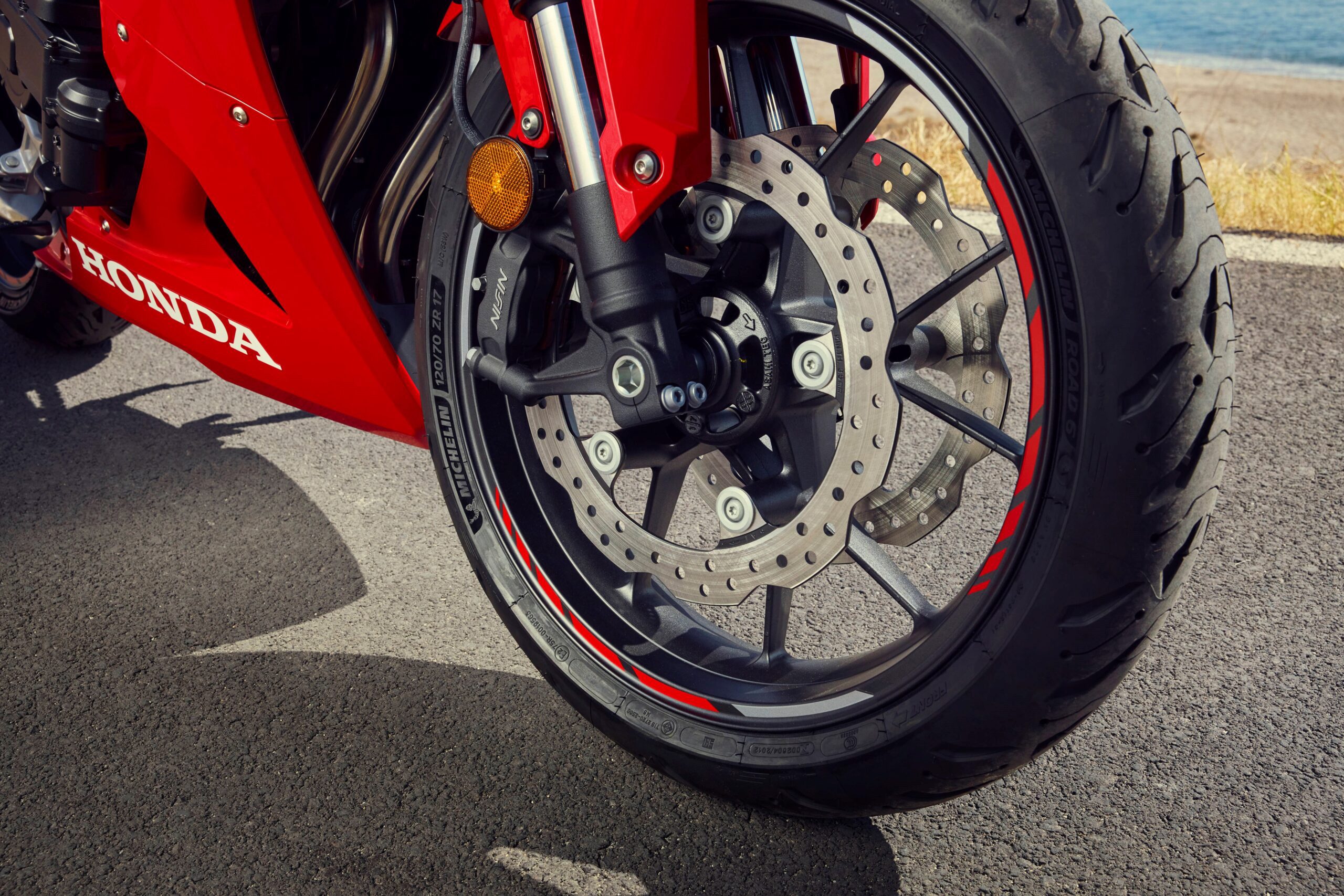 La horquilla delantera invertida Showa SFF-BP de 41 mm se traduce en una respuesta y calidad de marcha de primer nivel. Por su parte, el equipo de frenos incluye dos discos delanteros de 296 mm mordidos por pinzas radiales Nissin de cuatro pistones, y un disco trasero de 240 mm con pinza de un pistón.