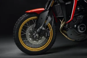 Respecto a sus suspensiones, este modelo lleva de serie en su delantera una horquilla invertida regulable (extensión y compresión) Ollé R16v de 41 mm, componente que le otorga al piloto una mayor sensibilidad durante el manejo de la moto, además de permitirle modificar el recorrido de la suspensión según su peso, su estilo de conducción o sus preferencias. En cuanto a la suspensión trasera, tampoco se queda corta, ya que dispone de un amortiguador mono-shock de gas con triple regulación (precarga, extensión y compresión) Ollé R16v y botella separada con sistema PRS. Asimismo, si hablamos de frenada, este modelo equipa, tanto en la parte delantera como en la trasera, discos de freno Galfer Wave (el delantero con pinza J.Juan de doble pistón y 300 mm de diámetro y trasero de 200 mm de diámetro).