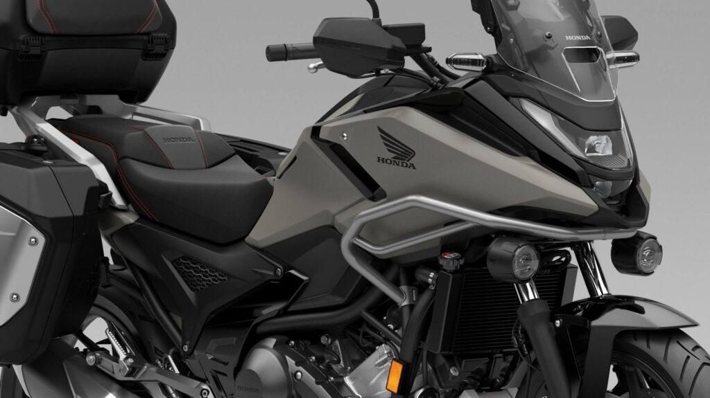 El diseño afilado de la carrocería, de estilo minimalista, define la silueta de la NC750X e integra una pantalla protectora y faro delantero LED. La pantalla TFT a color de cinco pulgadas ofrece una excelente legibilidad incluso en días soleados, además de conectividad con Honda RoadSync, gestionada mediante un práctico mando retroiluminado de cuatro direcciones en el manillar izquierdo. Esto permite al conductor disfrutar de navegación giro a giro en pantalla, además de otras funciones del smartphone.