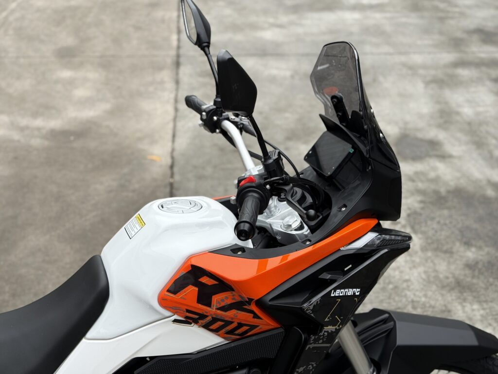 Uno de los puntos diferenciales del modelo es su peso contenido de sólo 150 kg, que favorece notablemente la maniobrabilidad y el control en cualquier entorno. La configuración de ruedas de 19 pulgadas en el tren delantero y 17 pulgadas en el trasero potencia su carácter trail, permitiendo absorber irregularidades y aportar estabilidad en diferentes tipos de terrenos. La altura libre al suelo de 260 mm subraya su orientación aventurera, mientras que el sistema de frenos con ABS garantiza un extra de seguridad acorde a sus prestaciones.