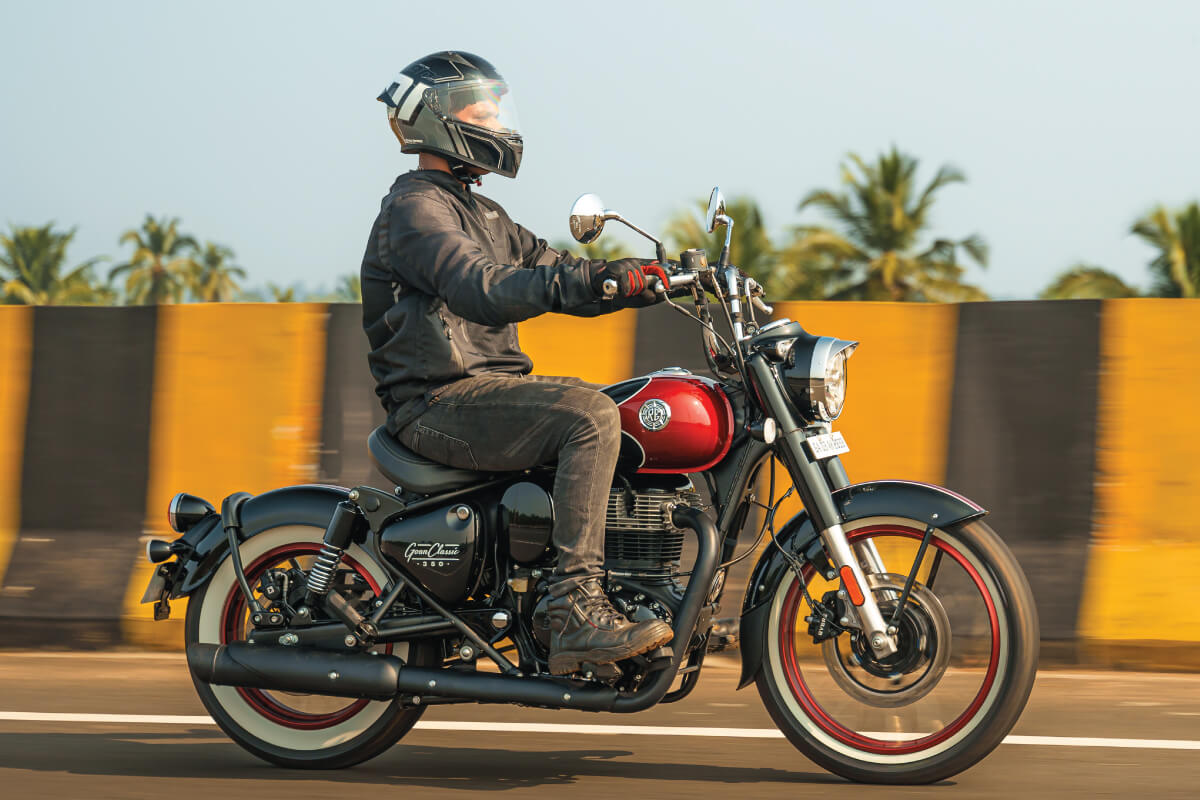 La Goan Classic 350 es un homenaje a la filosofía de vida relajada de los años 70. Su diseño luce un manillar elevado tipo Ape Hanger, asiento flotante a tan solo 750 mm del suelo y estriberas adelantadas que obligan al piloto a adoptar una postura erguida. Esta moto ha sido creada para ser vista y para disfrutar de cada viaje sin prisas.