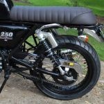 En la parte trasera, toda la atención se la lleva el doble amortiguador de muelles, esto unido al escape y a su asiento redondeado, la hace muy atractiva, la frenada queda a cargo de un disco único de 220mm y uno delantero de 300mm, con un sistema de ABS Bosch.