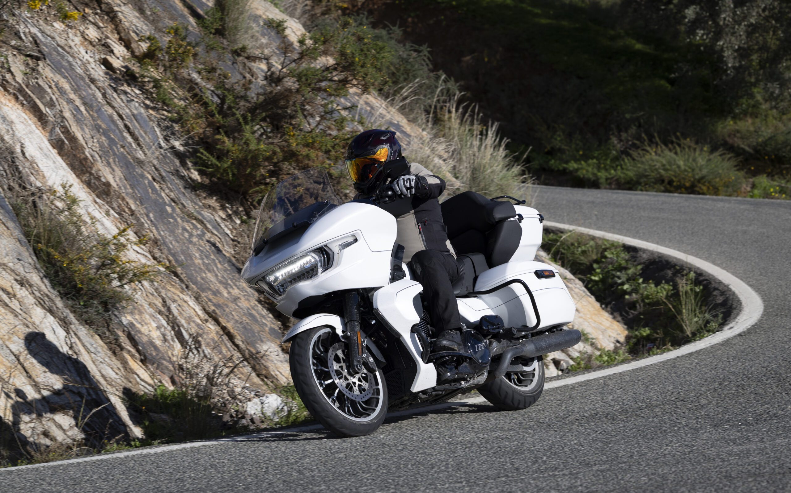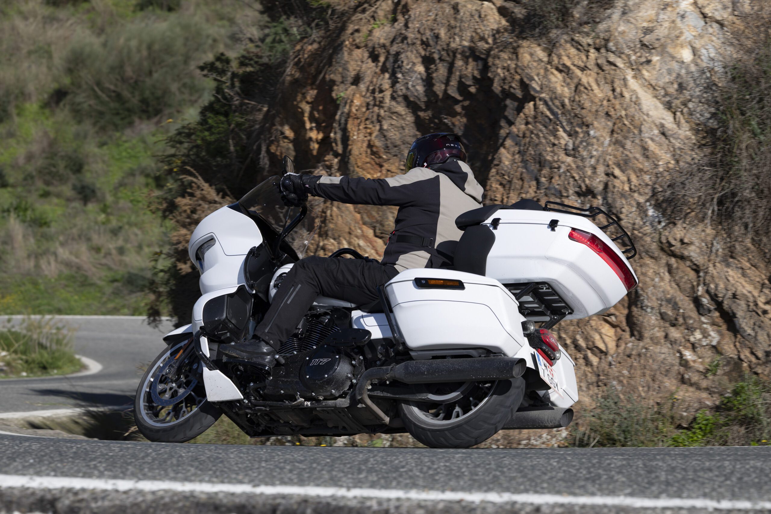 Los colores de ambos modelos de esta prueba contrastan con la profusión de cromados de su motor Milwaukee-Eight 117 y realza el exclusivo aspecto de esta potente máquina americana junto a las maletas rígidas, moldeadas por inyección con una capacidad de 144 litros para transportar lo necesario en cualquier viaje.