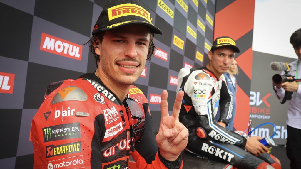 Bulega al principio ha dominado en tiempos los compases de la carrera y ha recortado tiempo al bicampeón turco, aunque luego no ha podido seguirle el ritmo. A pesar de que ha obtenido menos puntos que su máximo rival, las expectativas para el domingo pueden ser diferentes: «Perdí mucho ritmo en las primeras vueltas, intenté seguirle el ritmo pero no tenía buenas sensaciones. Usé el neumático delantero nuevo que Pirelli trajo aquí, y después de seis o siete vueltas empecé a entenderlo mejor y a sentirme más cómodo. Así que intenté alcanzar a Toprak y vi que me acercaba cada vez más, pero noté una fuerte caída en el tren delantero en las últimas cinco o seis vueltas y casi me caigo. Ya no podía mantener el buen ritmo que tenía antes«.