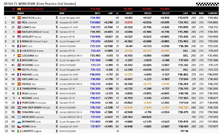 El español ha sido el más rápido de la jornada. Tras él están Rea y Lowes. El actual Campeón del Mundo, Razgatlioglu, cuatro.