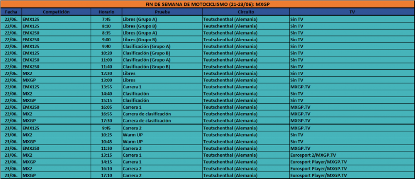 Los horarios del fin de semana también serán los habituales, con los libres (13:30), las clasificaciones (14:40) y las carreras de clasificación (16:55) para ambas categorías, y con las carreras el domingo, desde las 13:15 y las 16:10 de la tarde. Además, los Campeonatos de Europa de 125 y 250 actuarán de categorías soporte.