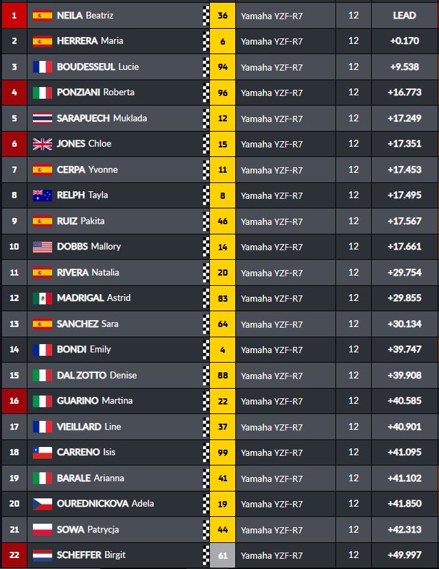 La segunda carrera del fin de semana volvió a confirmar el altísimo nivel competitivo del Mundial Femenino, con un nuevo duelo directo entre las principales aspirantes al título en un escenario exigente como Assen. La ausencia de Paola Ramos, declarada no apta tras su caída del sábado, marcó el contexto de una prueba condicionada también por la incertidumbre meteorológica.