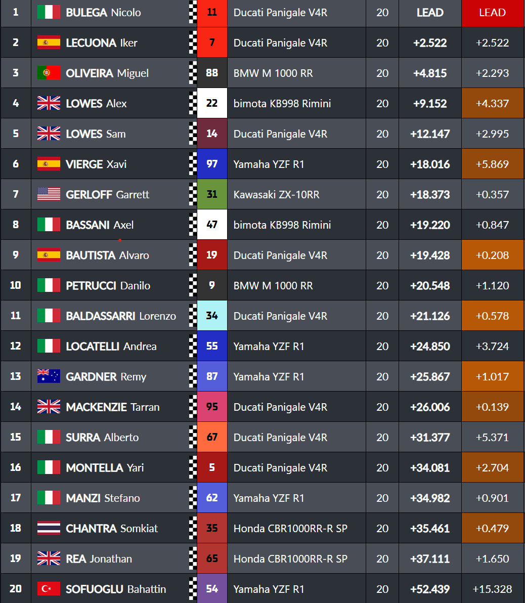 Bulega vuelve a dar una clase magistral, Lecuona confirma su progreso con la Panigale y Oliveira enciende la grada portuguesa con su primer podio en SBK.